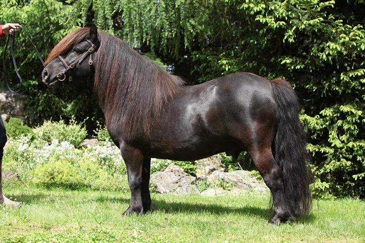 Přes 14 generací promyšleného chovu nese ve svých liniích hřebec Harviestoun Petraeus získaný od paní baronky Lucy Poett ze Skotska. Je to korektní zdravý hřebec středního rámce, má výborné končetiny, mohutnou kostru, hustou hřívu a ocas. Několik generací jeho potomků u nás narozených ukazuje, že je opravdu zlepšovatel v celkovém měřítku všech parametrů. Produkuje vyšší potomky než je sám. U nás nyní nevyužitý chovně - změna linií.